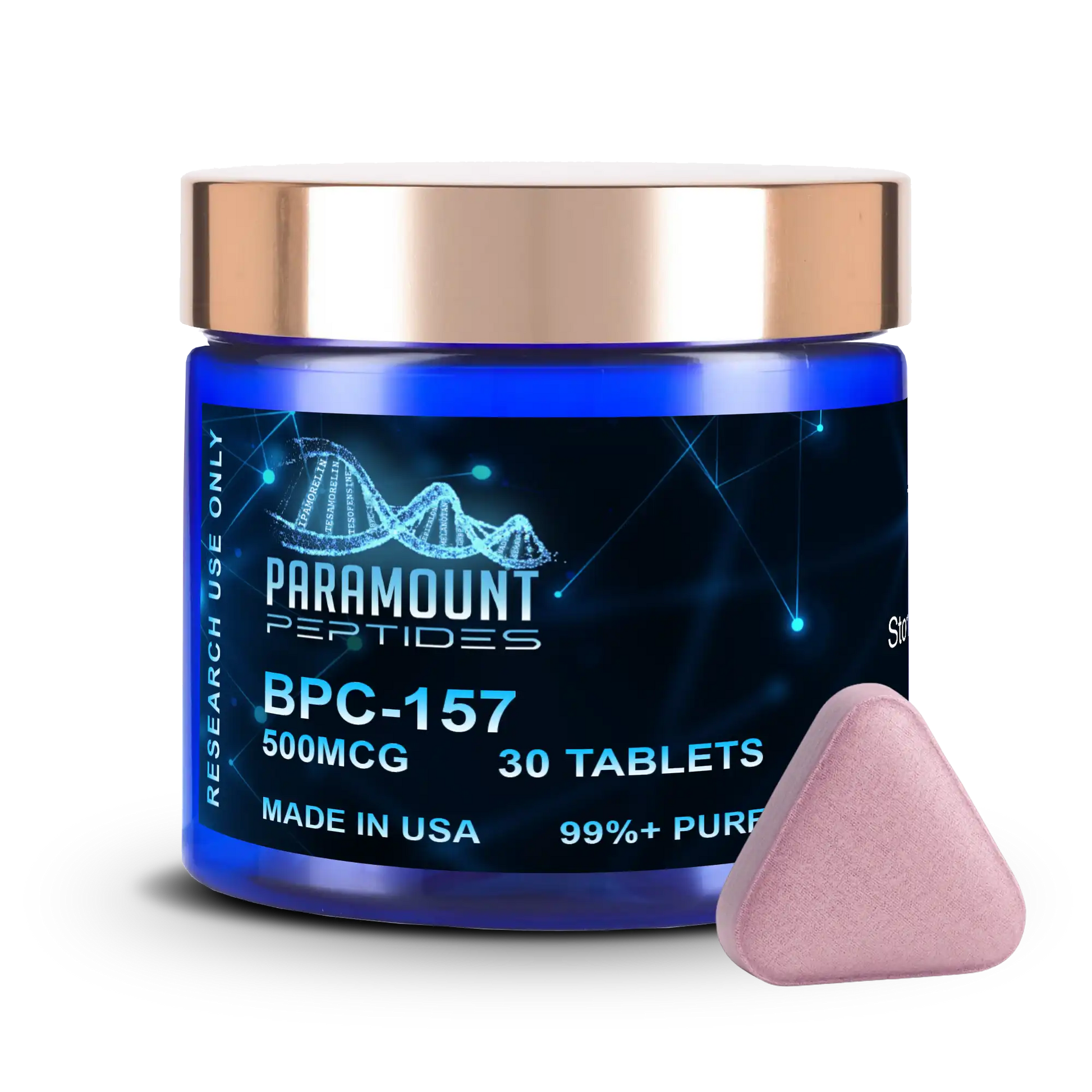 BPC‑157 Tablets are a research-grade, oral dosage form containing a 500 mg capsule of stable BPC‑157 peptide, derived from a naturally occurring gut protein fragment. They are designed for experimental models to investigate the peptide's properties in tissue support, inflammation modulation, and gastric integrity, leveraging its noted stability in the gastrointestinal environment.