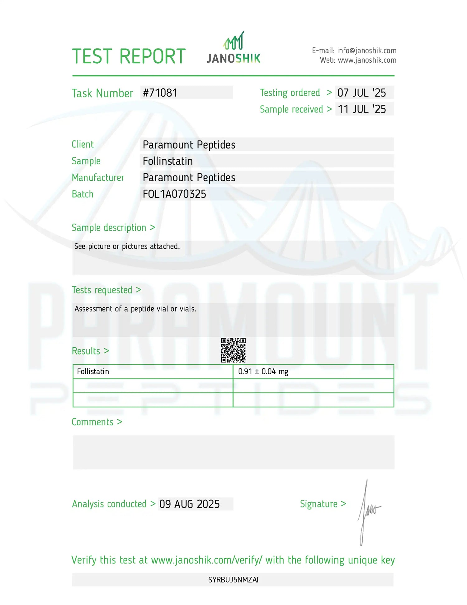 We are continuously conducting HPLC test on all of our raw powders as well as finished products to ensure the quality of our products. You can have the product you bought from us tested at any HPLC licensed testing facility and if the results are negative, we will refund the following: