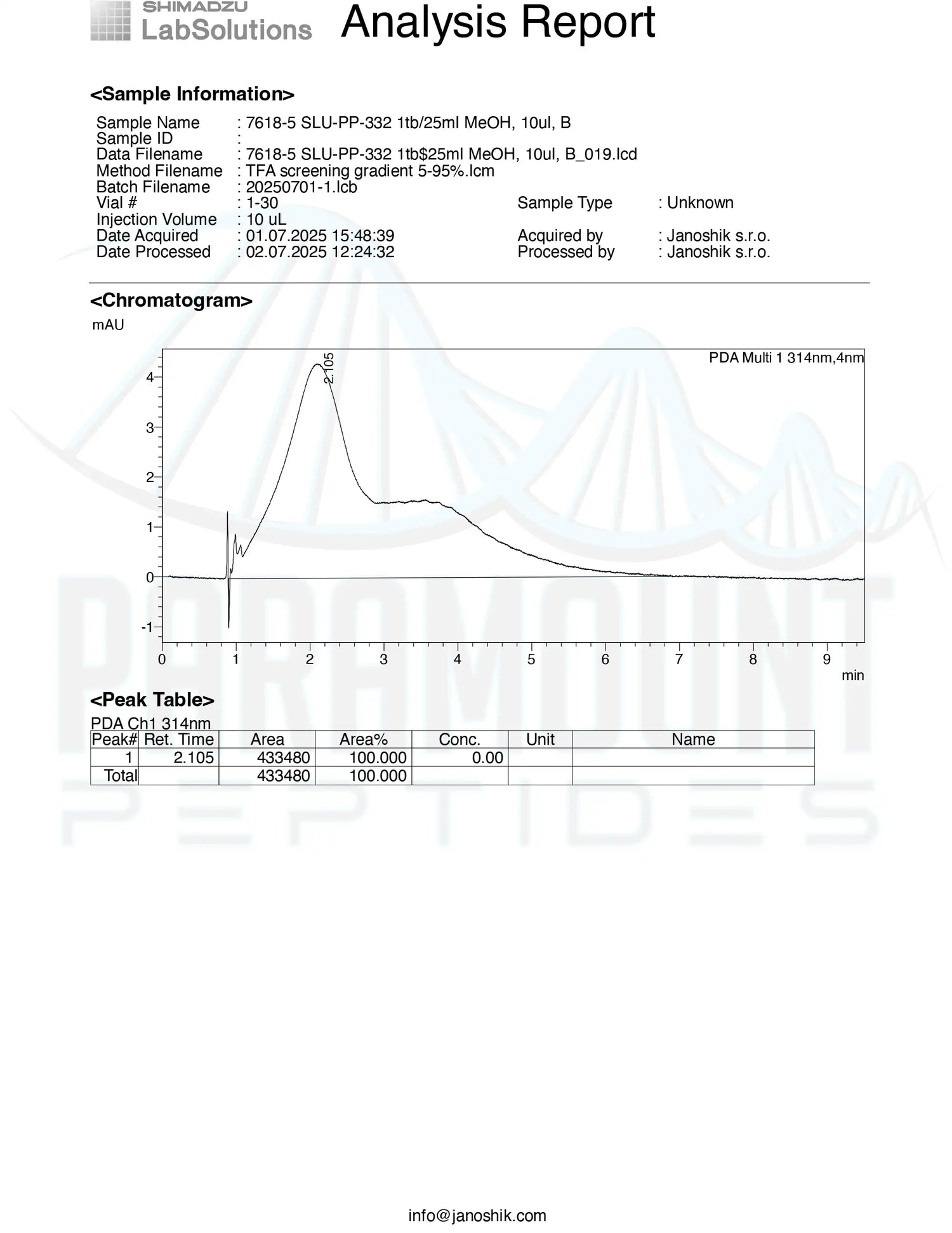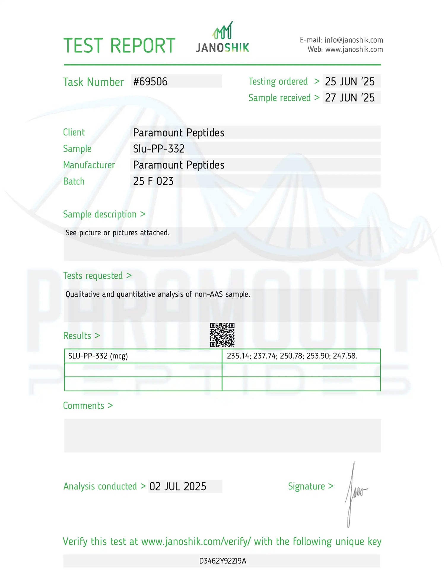 • Insulin Sensitivity & Metabolic Health: Obese and metabolic syndrome models reported improved glucose tolerance and insulin sensitivity following SLU‑PP‑332 treatment.
