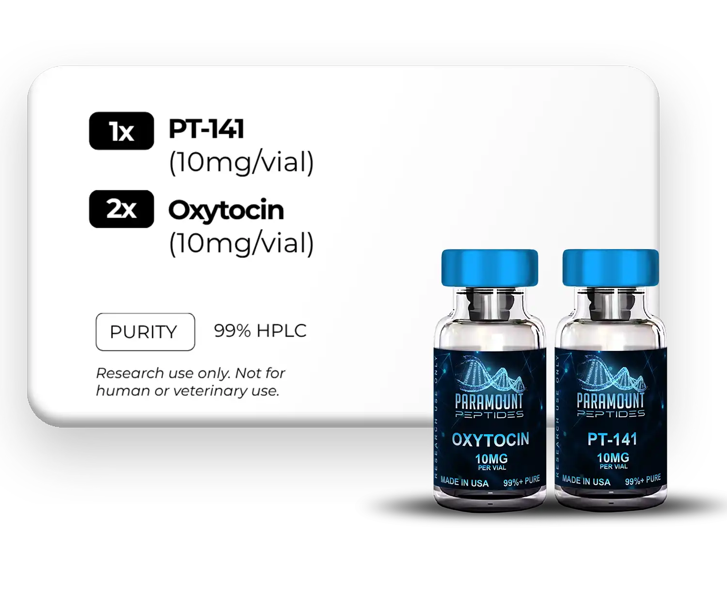 This bundle is a research-focused pairing of two neuropeptides designed to explore neurochemical modulation of social bonding, affective behavior, and motivational pathways: