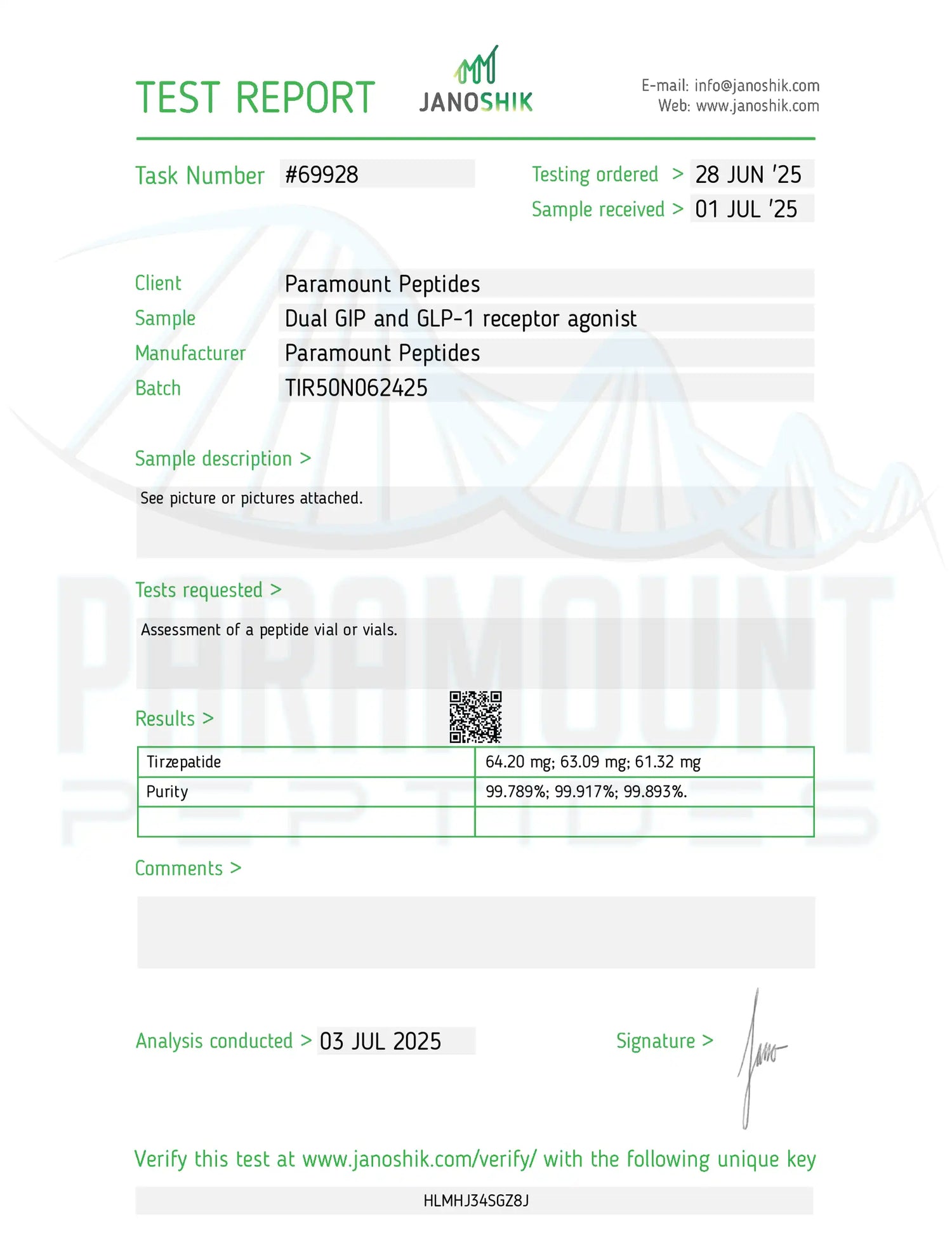 We are continuously conducting HPLC test on all of our raw powders as well as finished products to ensure the quality of our products. You can have the product you bought from us tested at any HPLC licensed testing facility and if the results are negative, we will refund the following: