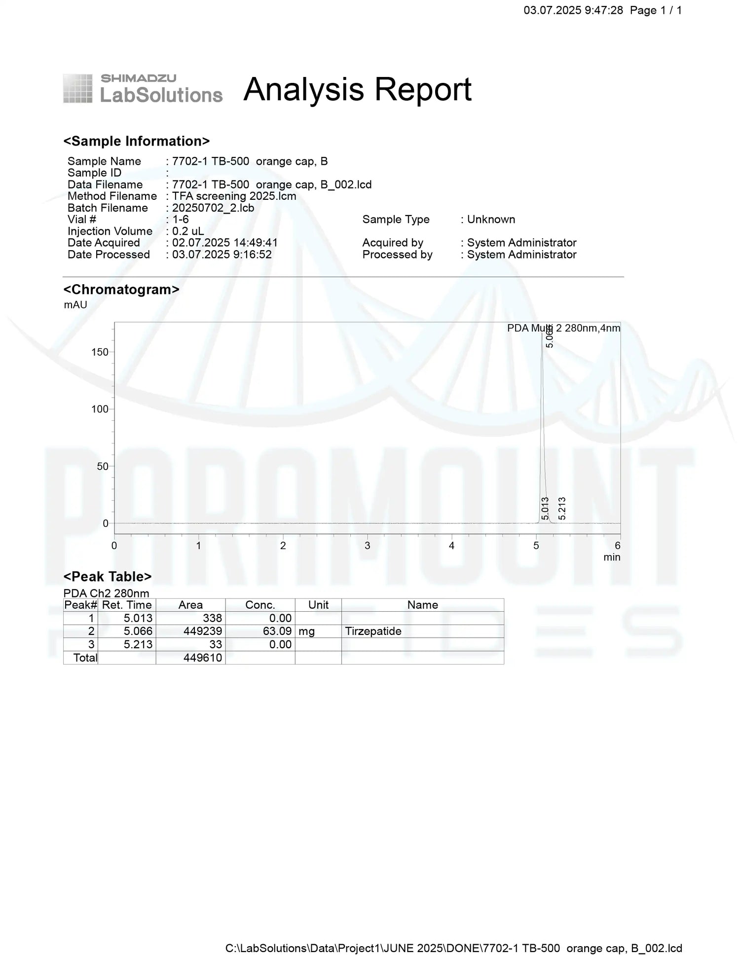 Certificate of Analysis