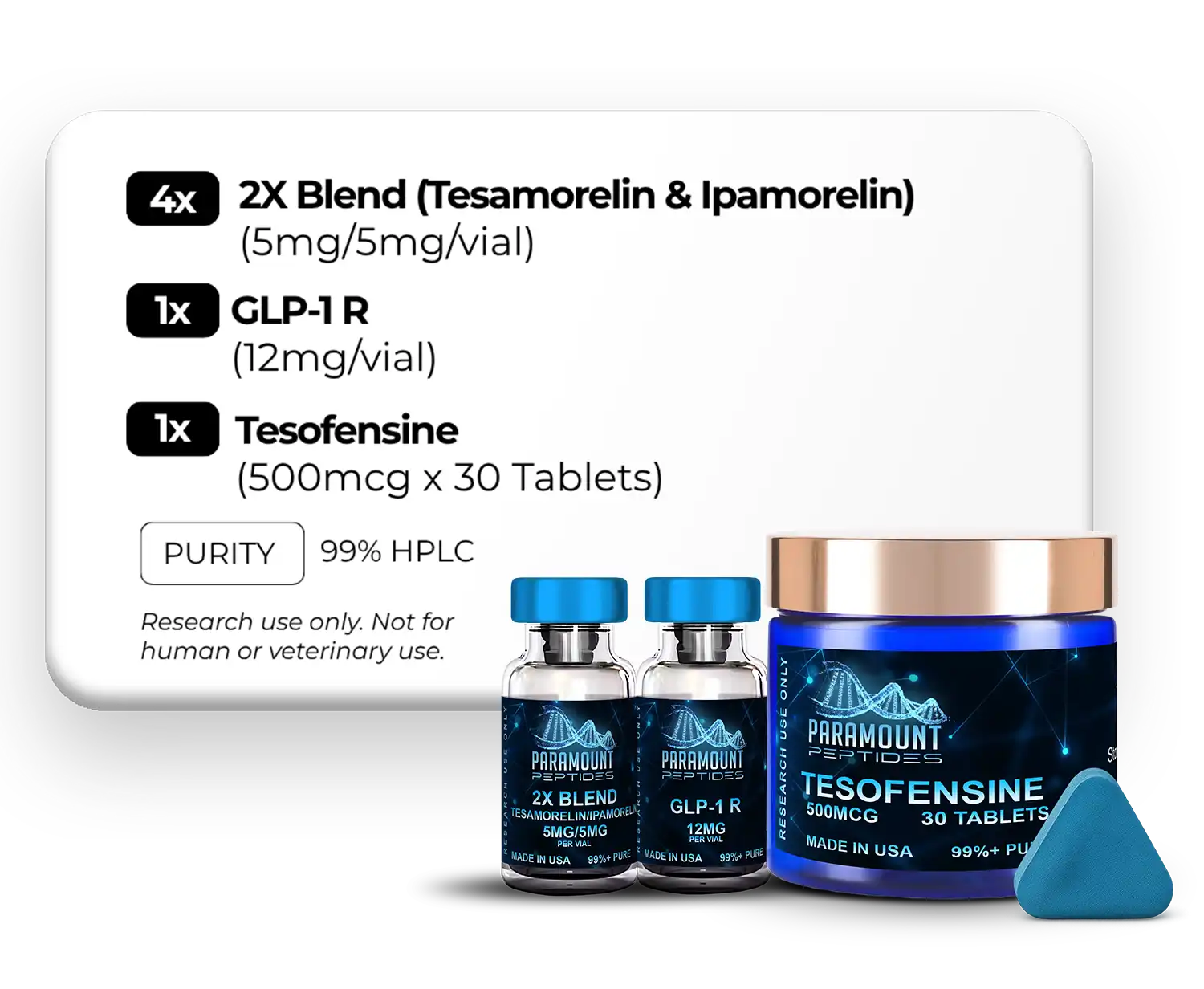2X Blend (Tesamorelin/Ipamorelin (5/5mg)), Tesofensine (500mcg x 30 Tablets), GLP‑1 R (12mg)